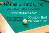 My name is Matt MacPhail and I began this trade in 2001 working for a billiard company. I created NoFail Billiards, inc. in 2009 and became 1 of few Certified Billiard installers in the area. I'm currently servicing the New England & Albany, NY areas.